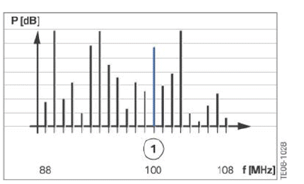 The tuner module in the CIC is now informed of the station selected by the customer using iDrive. As a result, the tuner module in the CIC selects the matching frequency. This is done by setting a bandpass filter. The bandpass filter suppresses all frequencies above and below the selected station frequencies.