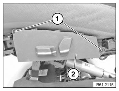 Carefully lever out rocker switch (1) using special tool 00 9 317 from the rear door armrest (2).