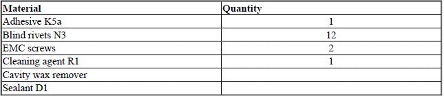 Drill 12 dia. 4.2 mm holes for blind rivets in area (1).