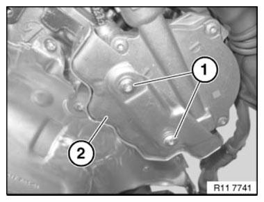 Installation note: Align vacuum pump drive to groove (1) of intake camshaft.